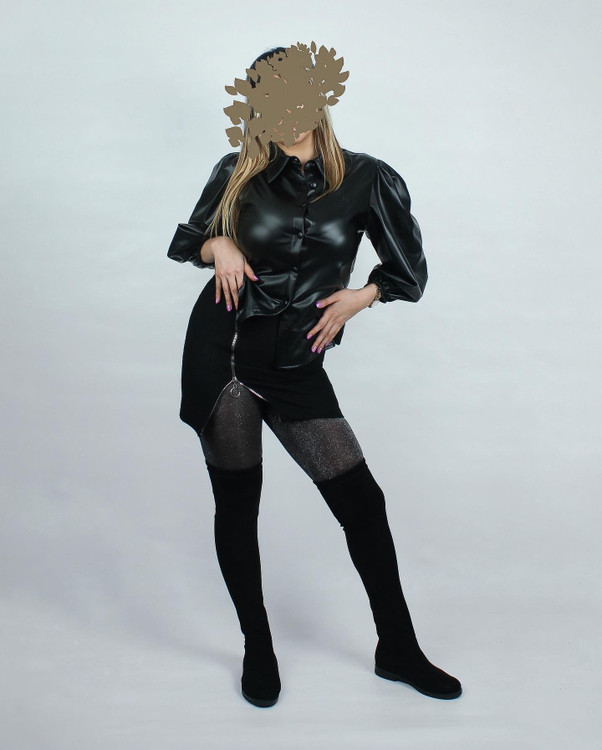 شومیز چرم و دامن کوتاه بوکله رنگ مشکی